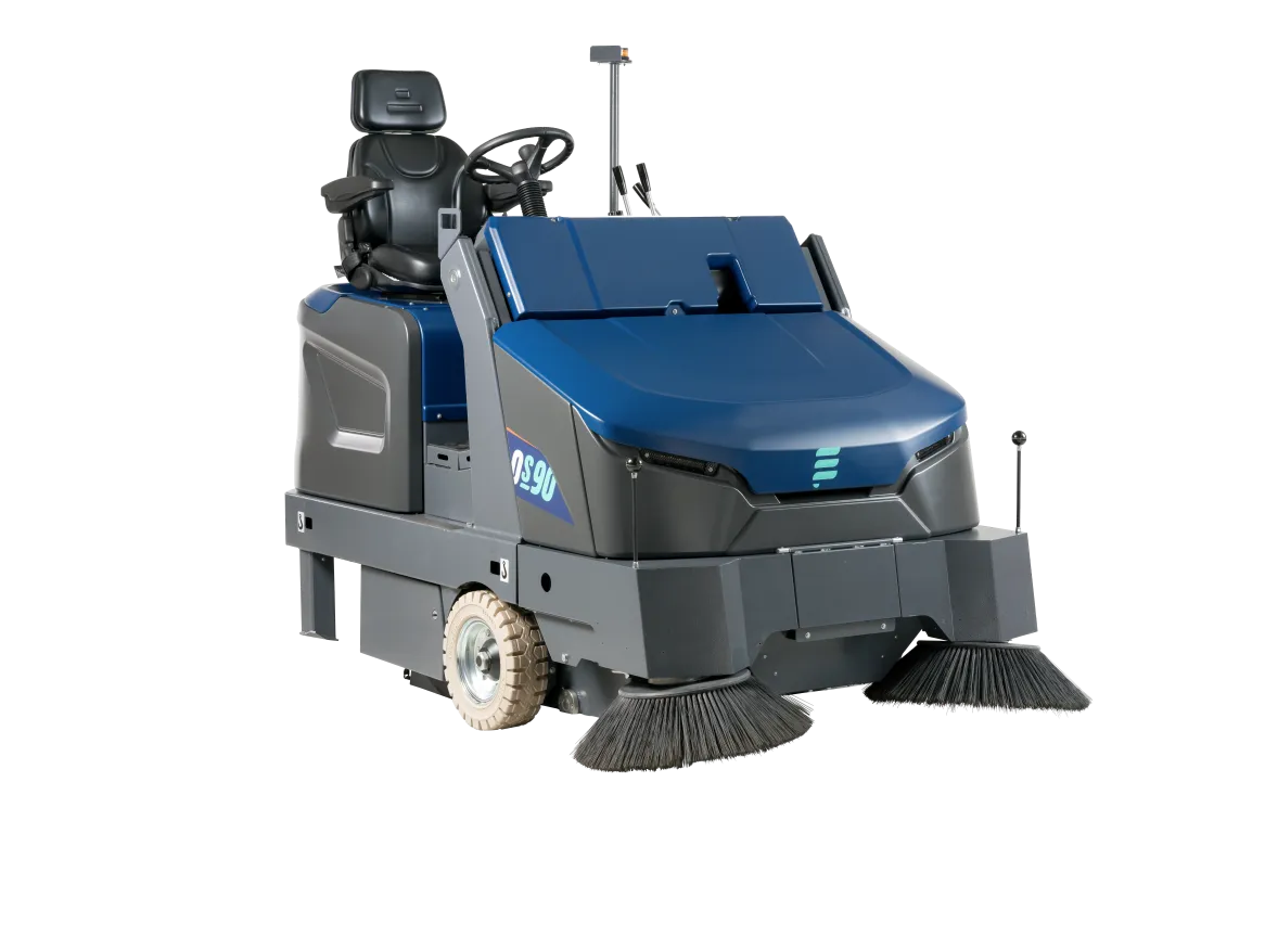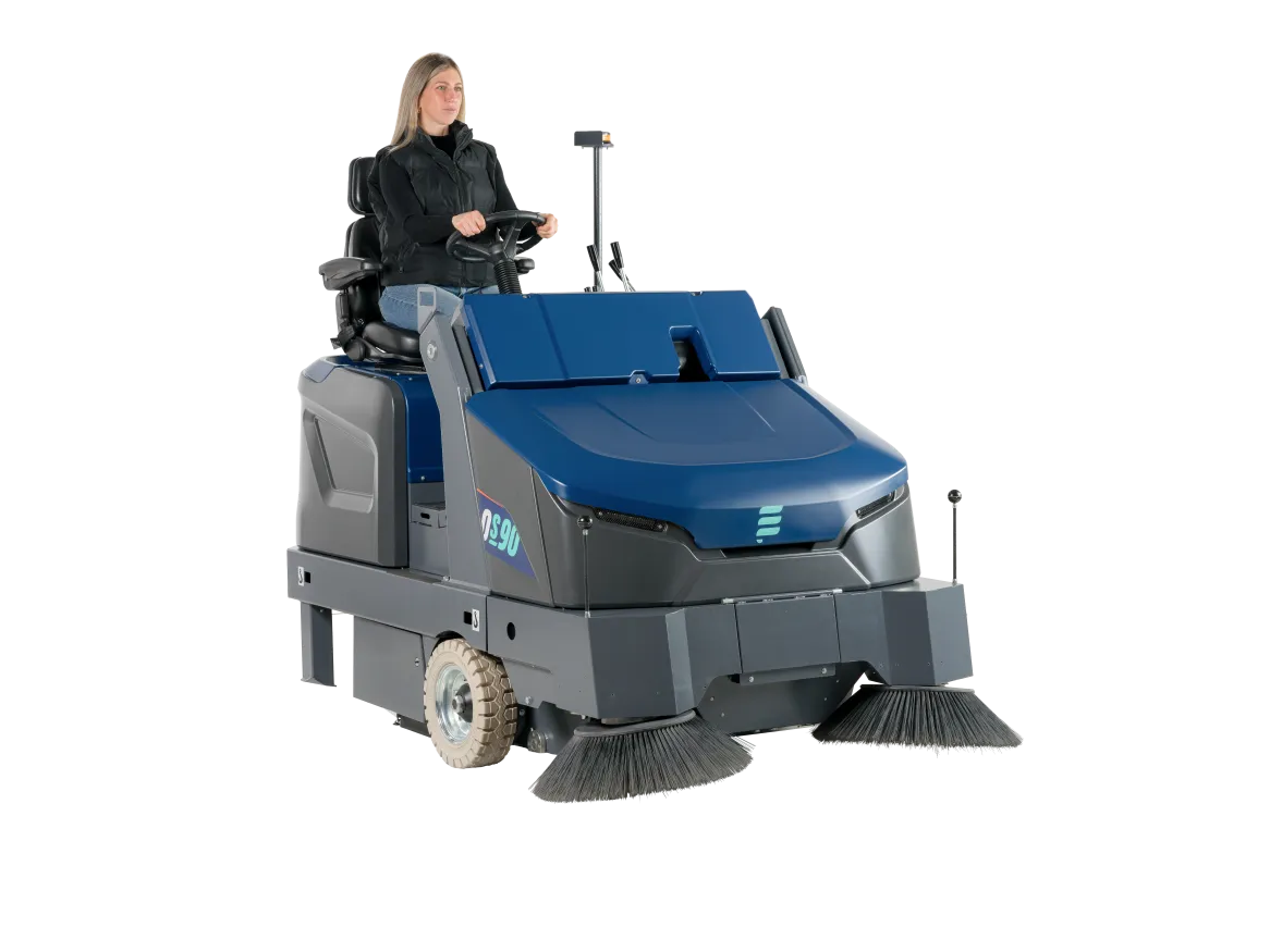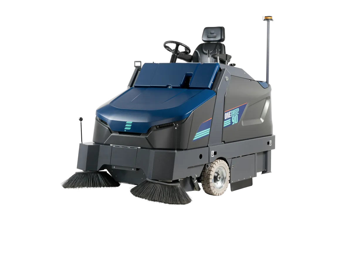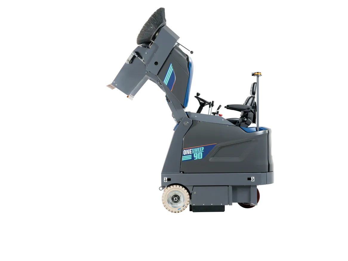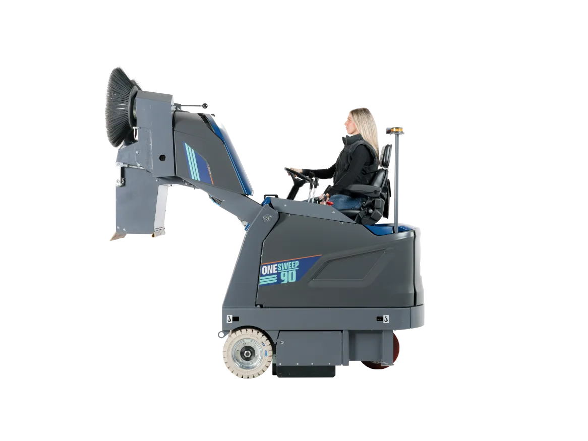 The OneSweep 90 is a brand-new industrial sweeper for cleaning medium to large floors of approximately 5.000 m² / 6000 yd² to 20.000 m² / 24,000 yd².